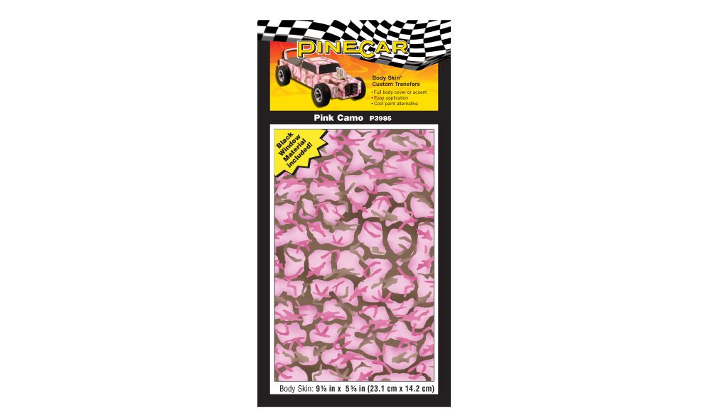 Make it camouflage, and they'll never know what beat 'em! Apply Custom Body Skins® to your PineCar Racer or Sailboat Racer quickly and easily with a wet sponge. Wrap the entire body or cut out accents and details. Requires NO artistic talent.