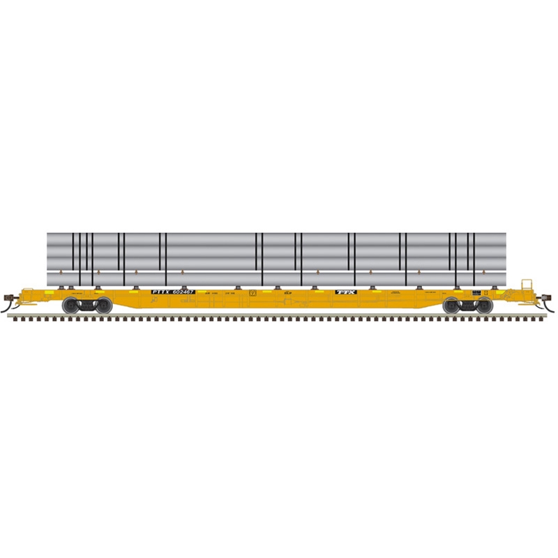 Atlas 20008201 Master Series HO Scale F89J Flat Car - PTTX Yellow w/Conspicuity (w/deck risers & silver pipe load) Road # 602490 (Yellow)