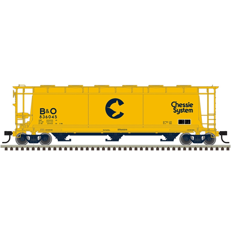 Atlas 20008219 Master Series HO Scale 3 Bay Cylindrical Hopper - Chessie System (B&O) Road # 836136 (Yellow/Blue)