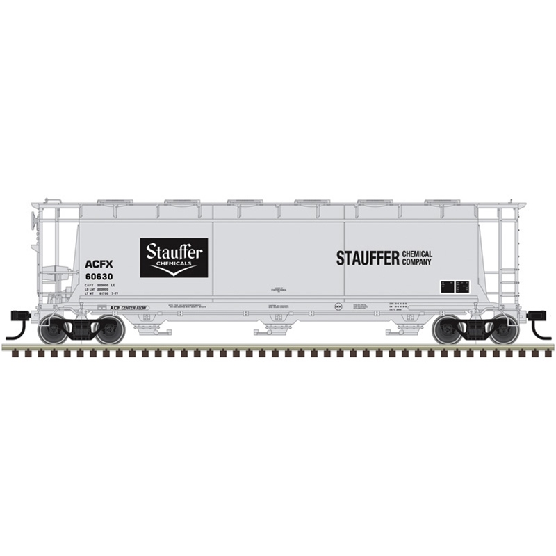 Atlas 20008227 Master Series HO Scale 3 Bay Cylindrical Hopper - Stauffer Chemicals (ACFX) Road # 60732 (Gray/Black)