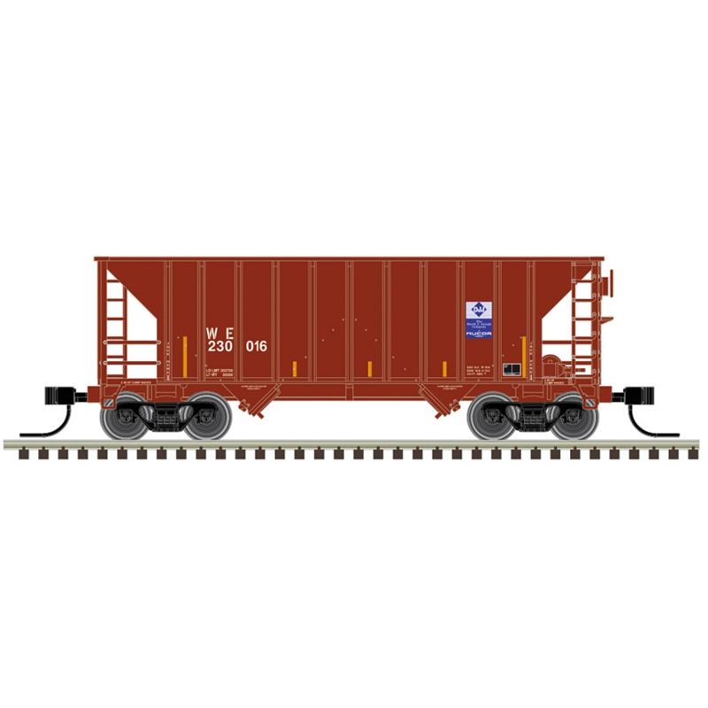 Atlas 50007496 Master Series N Scale Greenville 100 Ton Twin Hopper - Wheeling and Lake Erie (WE) Road # 230030 (Brown/White/Blue)