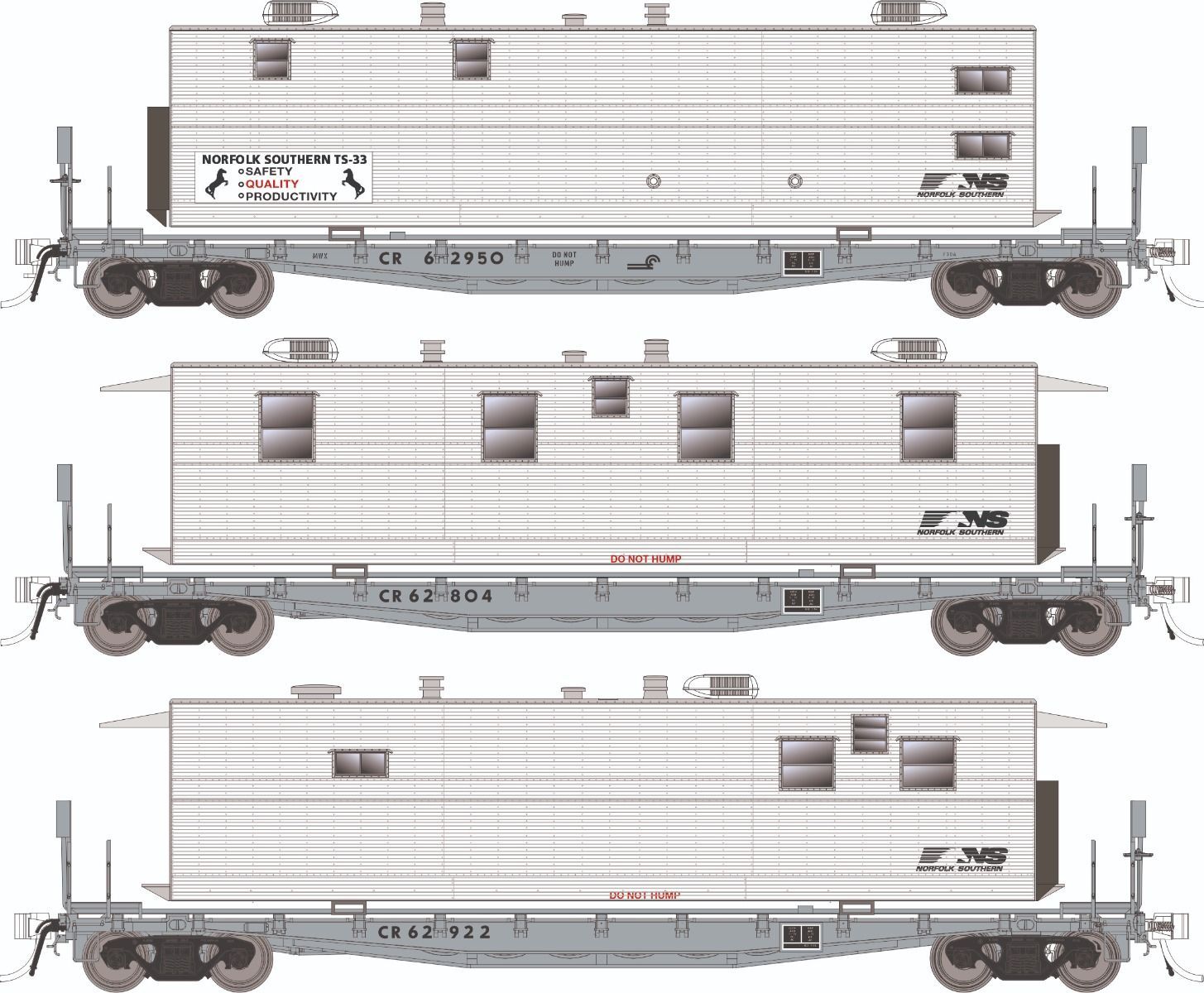 Rapido Trains 138109 HO F30A 50' Flat Car w/Camp Van: NS - MOW: 3-Pack #2