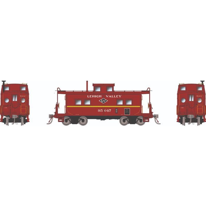 Rapido Trains 144108 HO Northeastern-style Steel Caboose: Lehigh Valley - Red/Yellow Stripe / Solid Frame / Porthole End Windows: #95047