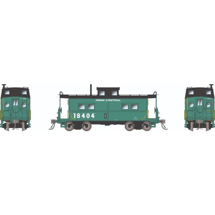 Rapido Trains 144110 HO Northeastern-style Steel Caboose: Penn Central - Green/Black Roof / Solid Frame / Porthole End Windows: #18404