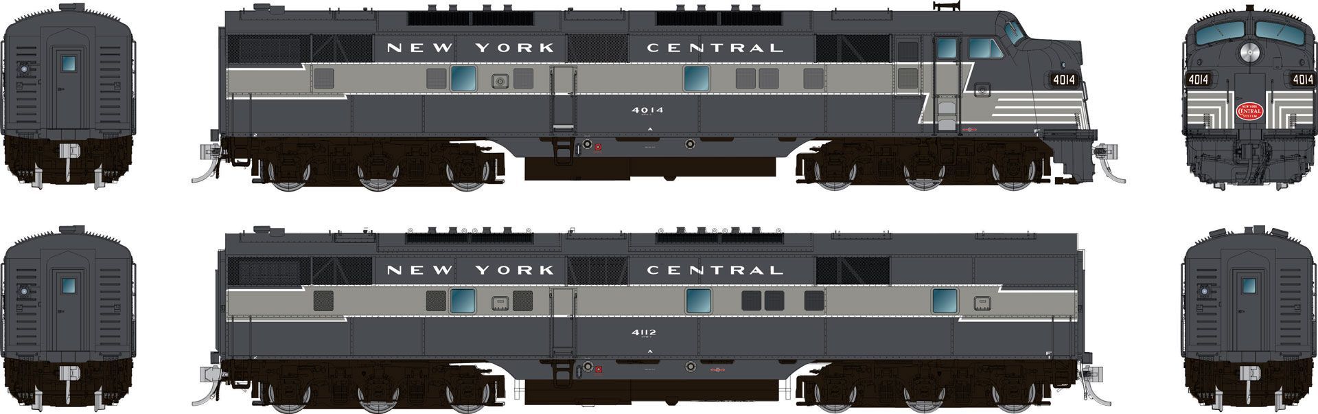 Rapido Trains 29021 HO EMD E7A + E7B Set Diesel Locomotive (DC/Silent): New York Central (Lightning Stripe) Road # 4028 + 4112