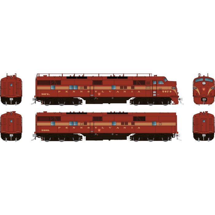 Rapido Trains 29024 HO EMD E7A + E7B Set Diesel Locomotive (DC/Silent): Pennsylvania (5-Stripe Scheme) Road # 5879 + 5840B