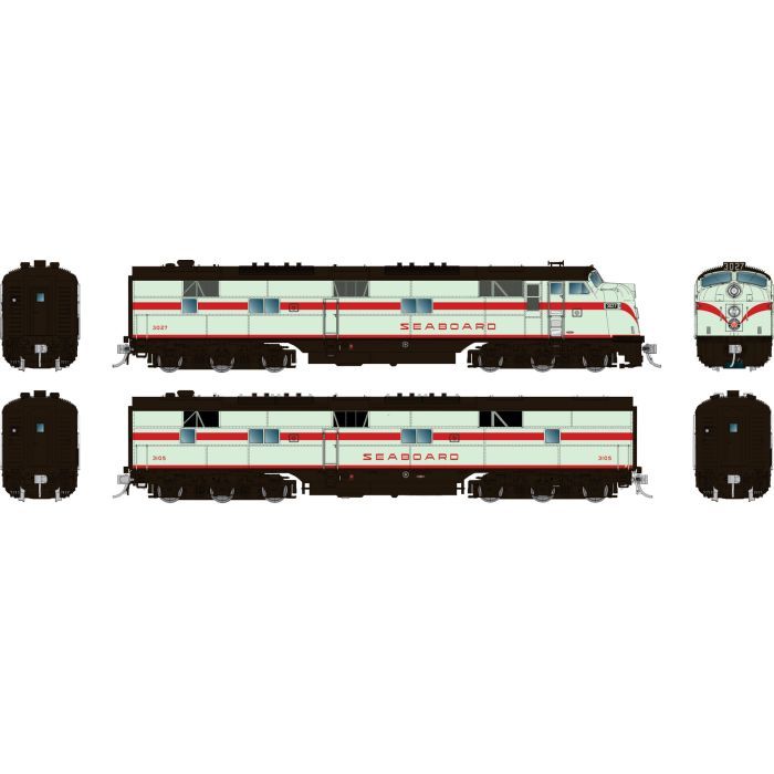 Rapido Trains 29029 HO EMD E7A + E7B Set Diesel Locomotive (DC/Silent): Seaboard Air Line (Mint Green) Road # 3027 + 3105