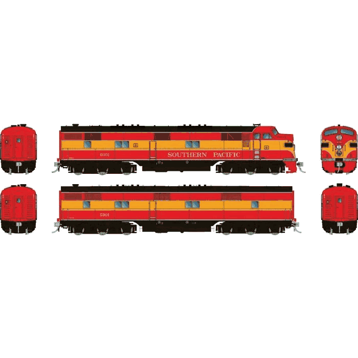 Rapido Trains 29033 HO EMD E7A + E7B Set Diesel Locomotive (DC/Silent): Southern Pacific (Daylight) Road # 6004 + 5905