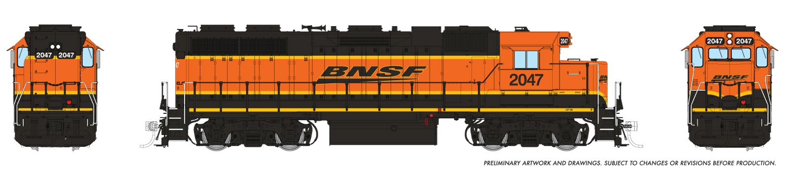 Rapido Trains 38541 HO EMD GP38 w/ext cab (DC/DCC/Sound): BNSF - Heritage 3: #2047