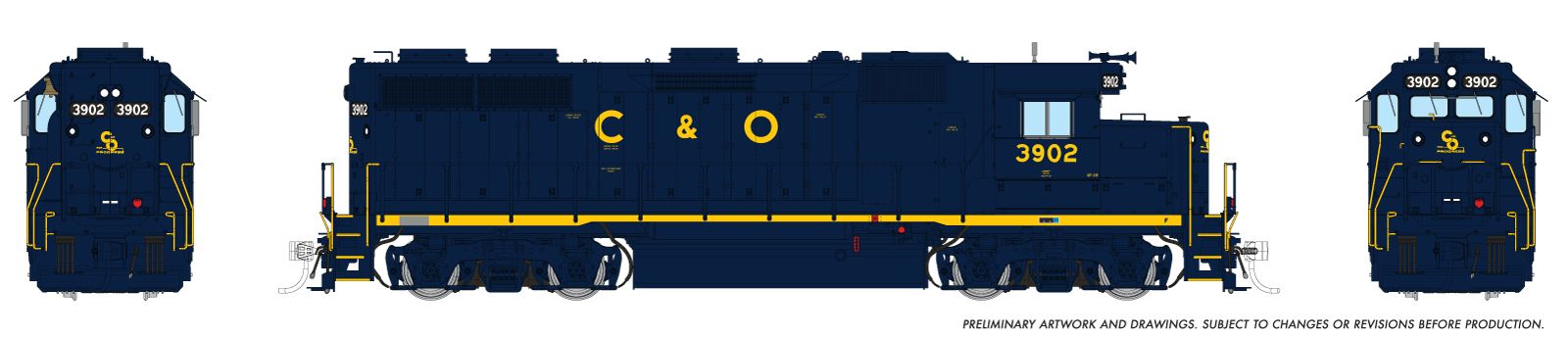 Rapido Trains 39001 HO GP39 Locomotive Chesapeake & Ohio C&O (Enchantment Blue/Yellow) - Era: 1969 + Road # 3902 (DC/Silent)