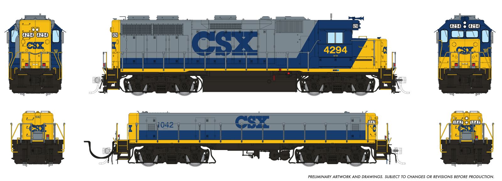 Rapido Trains 39030 HO GP39 Locomotive and SWMT Slug - CSX - Bright Future (YN2) (Blue/Grey/Yellow) - Era:1990s + Road # 4294 + 1042