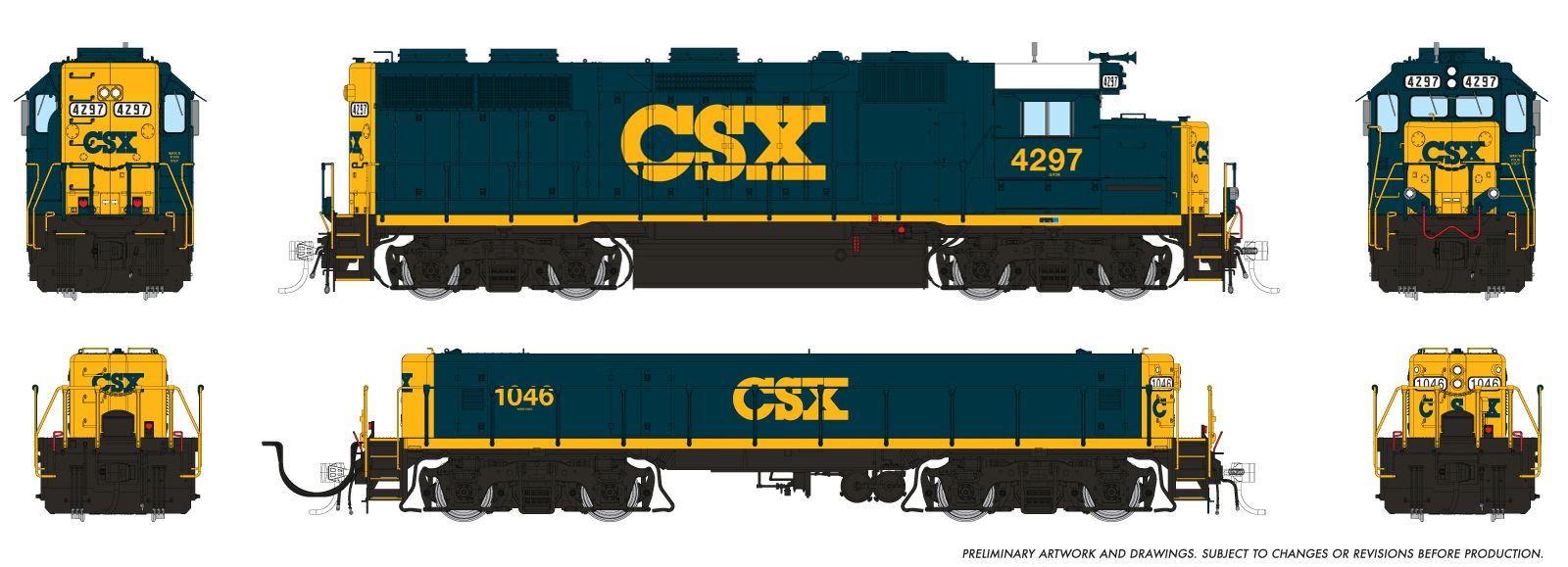 Rapido Trains 39034 HO GP39 Locomotive and SWMT Slug - CSX - Bright Future (YN2) (Blue/Grey/Yellow) - Era:2000s + Road # 4297 + 1046