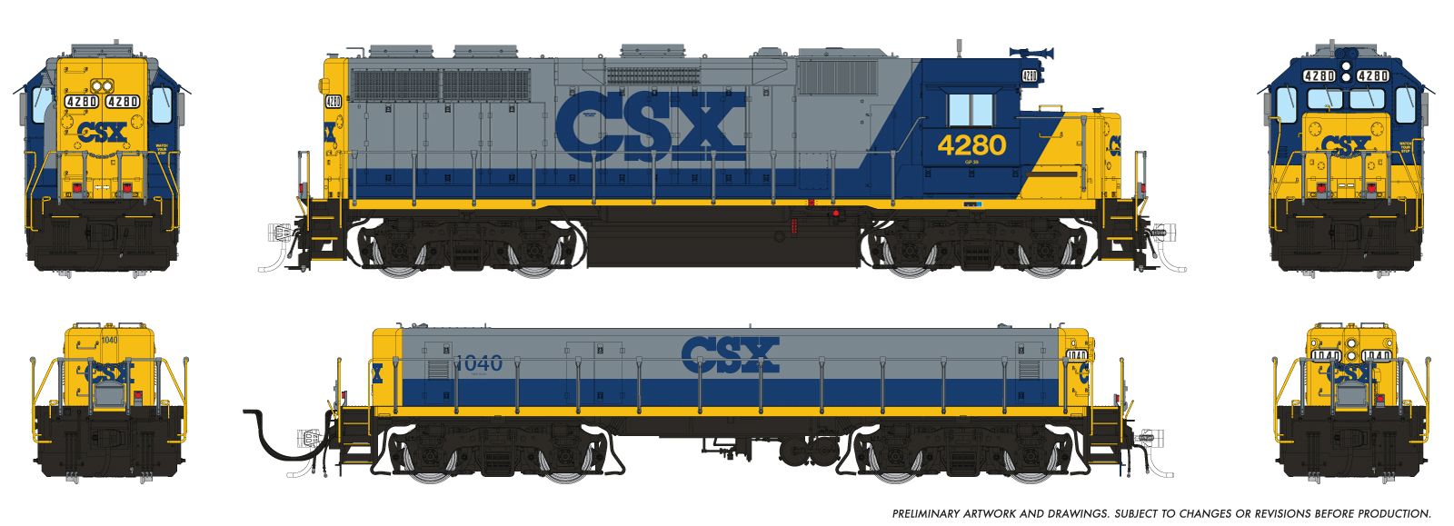 Rapido Trains 39527 HO GP39 Locomotive and SWMT Slug - CSX - Bright Future (YN2) (Blue/Grey/Yellow) - Era:1990s + Road # 4280 + 1040 (DC/DCC/Silent)