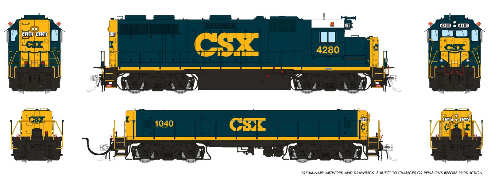 Rapido Trains 39531 HO GP39 Locomotive and SWMT Slug - CSX - Bright Future (YN2) (Blue/Grey/Yellow) - Era:2000s + Road # 4280 + 1040 (DC/DCC/Sound)