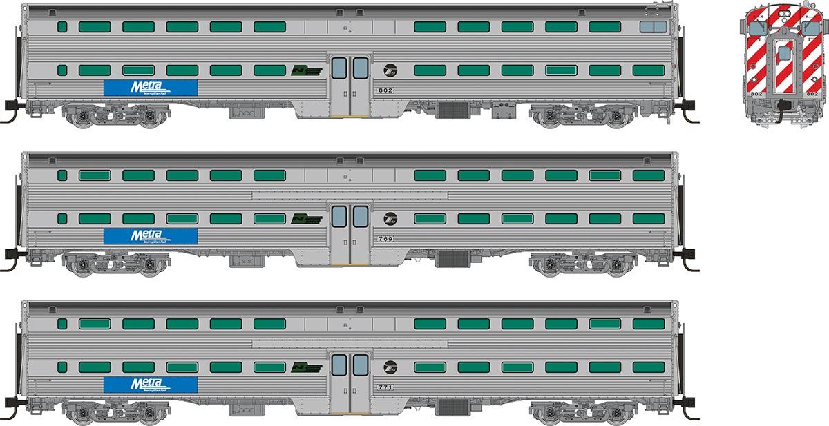 Rapido Trains 545004 N Gallery Commuter Car: Metra - BN Logo: Set #2 (Cab: 802 Coaches: 769 771)