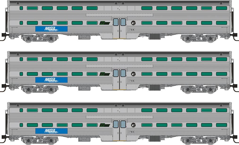 Rapido Trains 545005 N Gallery Commuter Car: Metra - BN Logo: Set #3 (Coaches: 749 756 760)