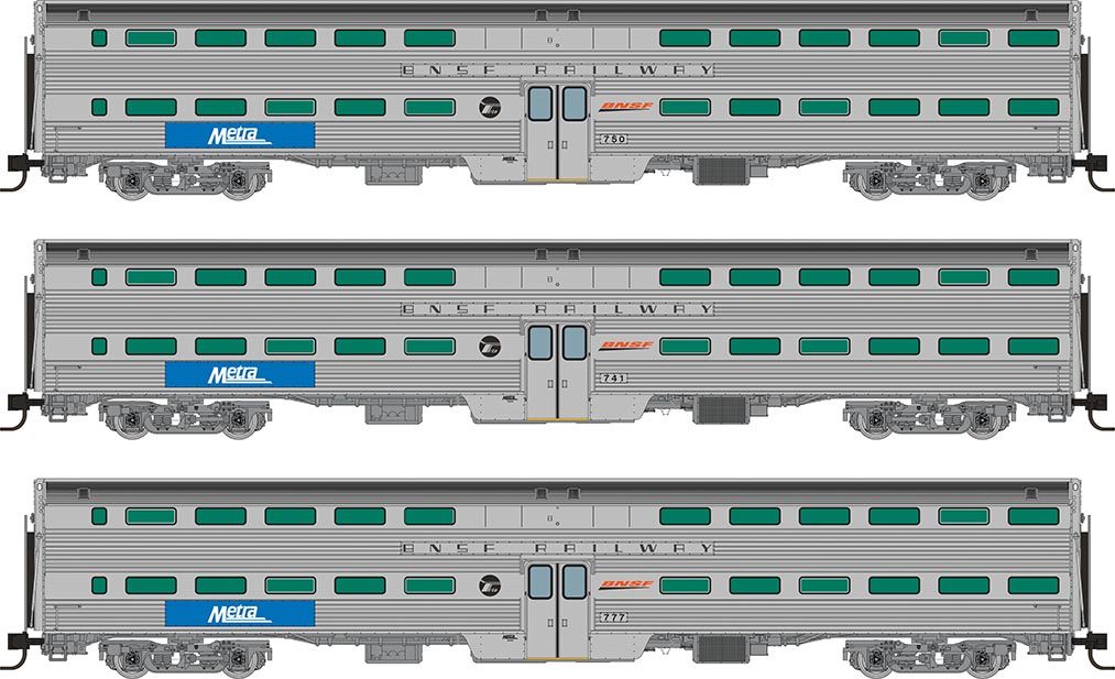 Rapido Trains 545011 N Gallery Commuter Car: Metra - BNSF Swoosh: Set #3 (Coaches: 741 750 777)