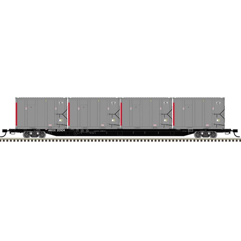 Atlas Trainman 20007735 HO Scale 85' Trash Flat Car with MSW Containers - East Carbon (AWXX) # 20512 (Black) Container AWIU 1254, 1193, 1158, 1254