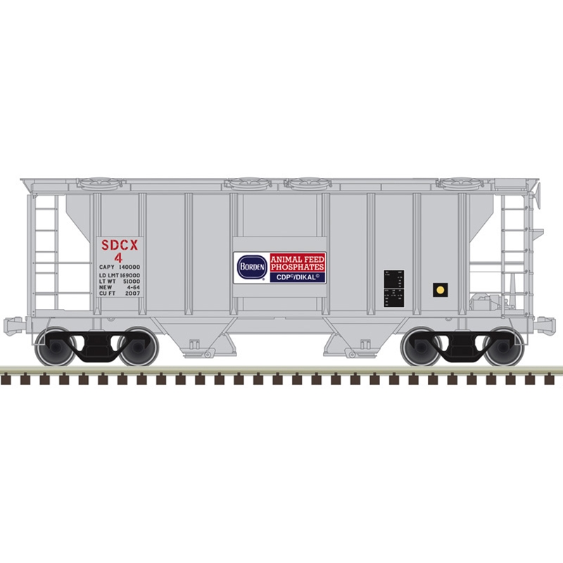 Atlas Trainman 20008184 HO Scale PS-2 Covered Hopper - Borden Animal Feeds (SDCX) Road # 51 (Gray/Red/White/Blue)