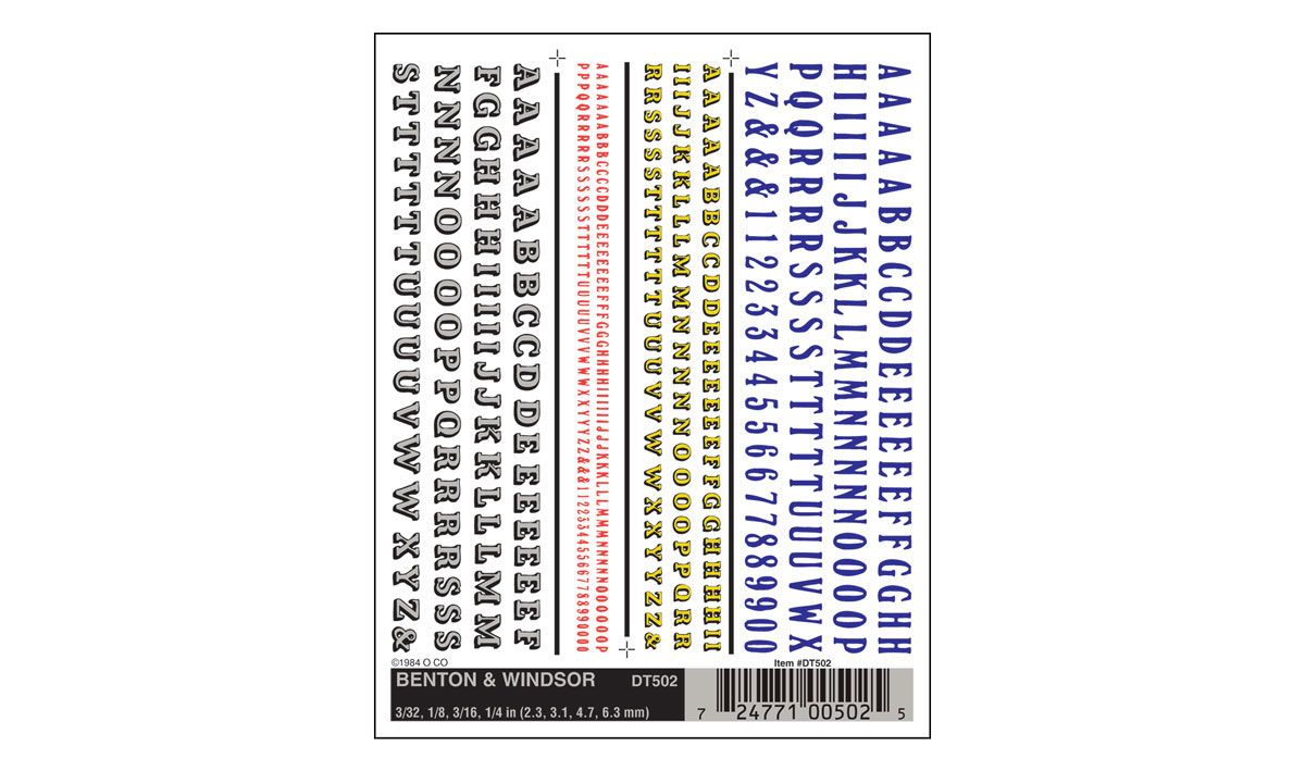 Woodland Scenics 502 Dry Transfer Decals - Benton & Windsor