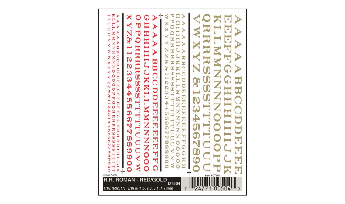 > Woodland Scenics 504 Dry Transfer Decals - RR Roman Red/Gold