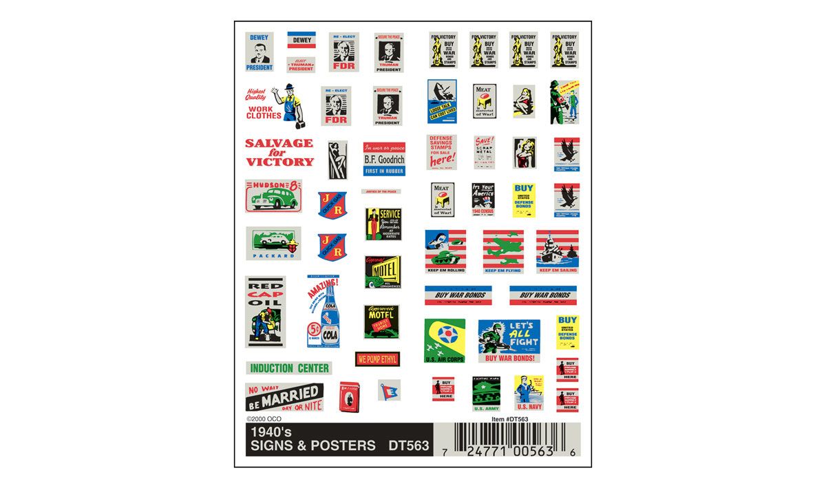 Woodland Scenics 563 Dry Transfer Decals - 1940's Signs and Posters