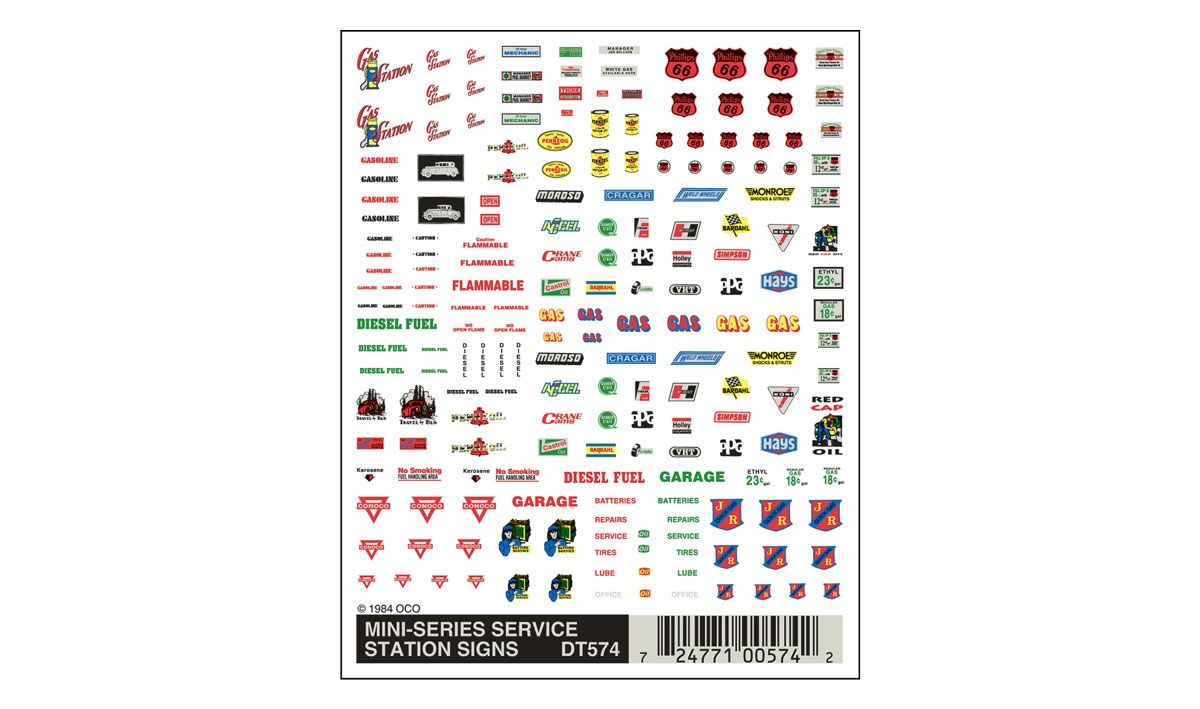 > Woodland Scenics 574 Dry Transfer Decals - Mini-Series Service Station Signs