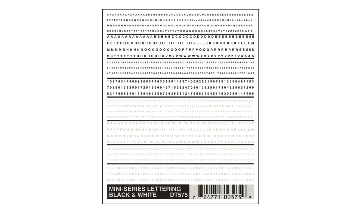 > Woodland Scenics 575 Dry Transfer Decals - Mini-Series Lettering Black and White