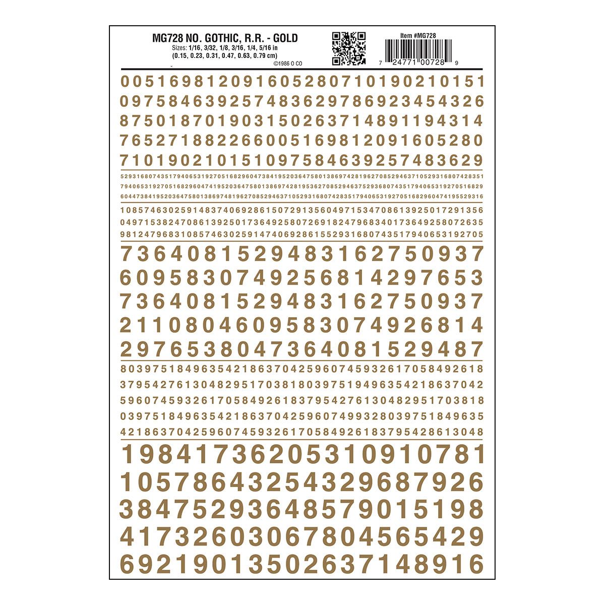 Woodland Scenics 728 Model Graphics Numbers Gothic R.R. Gold
