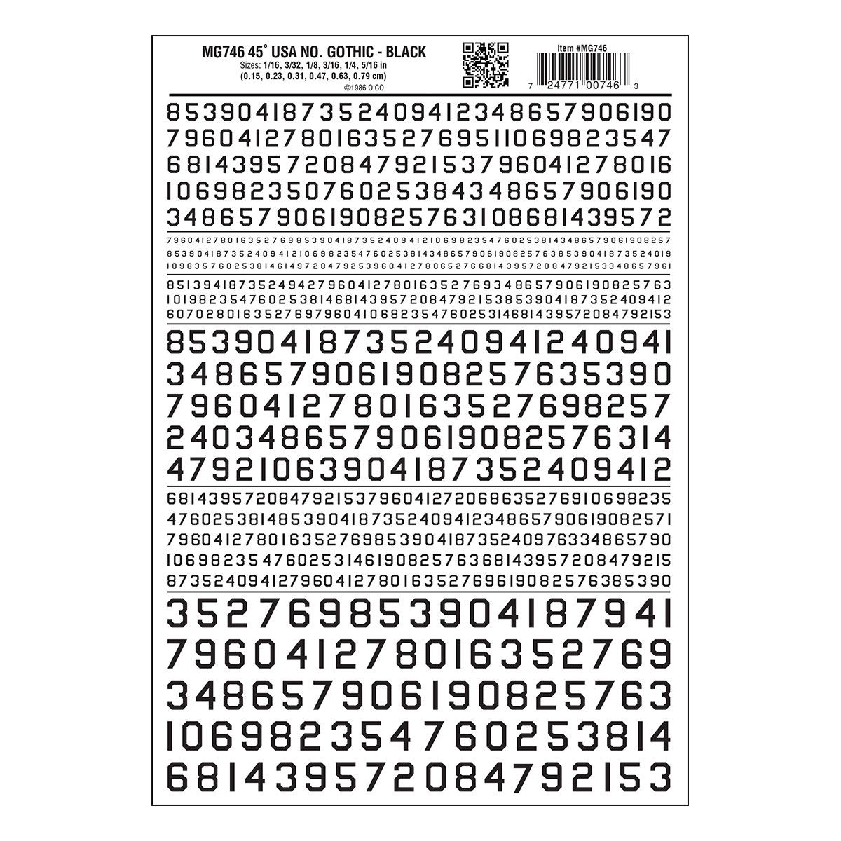 Woodland Scenics 746 Model Graphics Numbers 45° USA Gothic Black