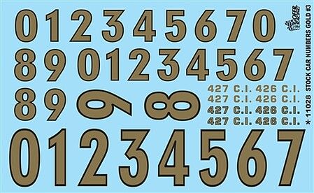 1/24-1/25 scale Gold Numbers Plastic Model Vehicle Decal kit by Gofer Racing Models Decals.
