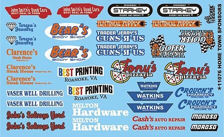 This is the 1/24-1/25 Hometown Sponsor Logos plastic model vehicle decal kit from Gofer Racing Models Decals.