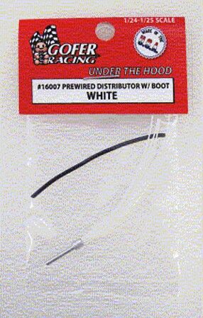 This is the 1/24-1/25 Scale Wired Distributor with Boot (White) Plastic Model Vehicle Accessory by Gofer Racing Models Decals.