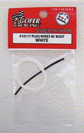 This is the 1/24-1/25 Scale Plug Wires with Boot (White) Plastic Model Vehicle Accessory by Gofer Racing Models Decals.