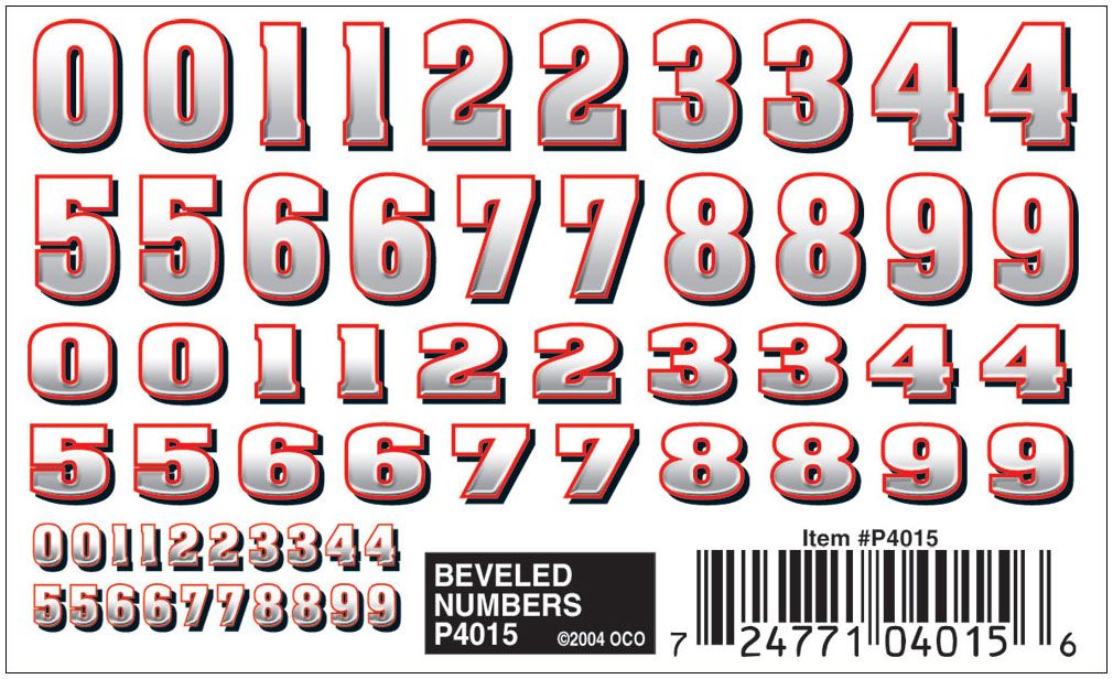 > PineCar 4015 Dry Transfer Decals - Beveled Numbers