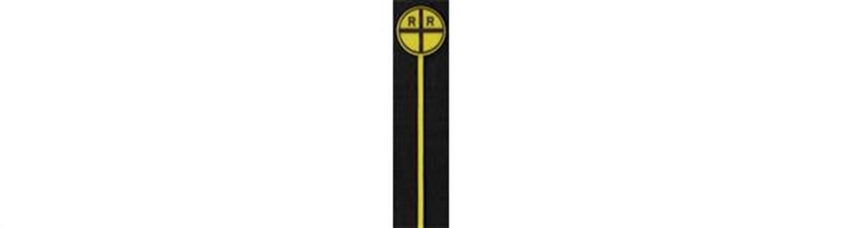 THIS IS THE CROSSING APPROACH WARNING SIGN USED PRIOR TO 1950. IT IS MOLDED IN YELLOW STYRENE WITH BLACK PRINTING.
