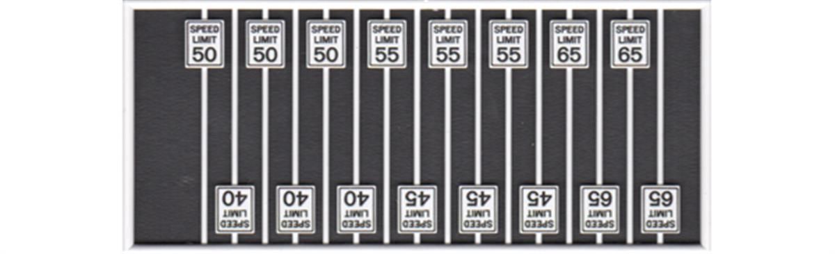 THESE ARE SPEED LIMIT SIGNS. 3 EACH OF 40, 45, 50 & 55 MPH. 4 EACH OF 65 MPH.