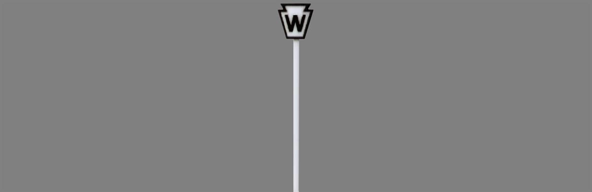 THIS IS A PRR KEYSTONE SHAPED WHISTLE POST. IT IS INJECTION MOLDED IN WHITE STYRENE AND PRINTED IN BLACK.